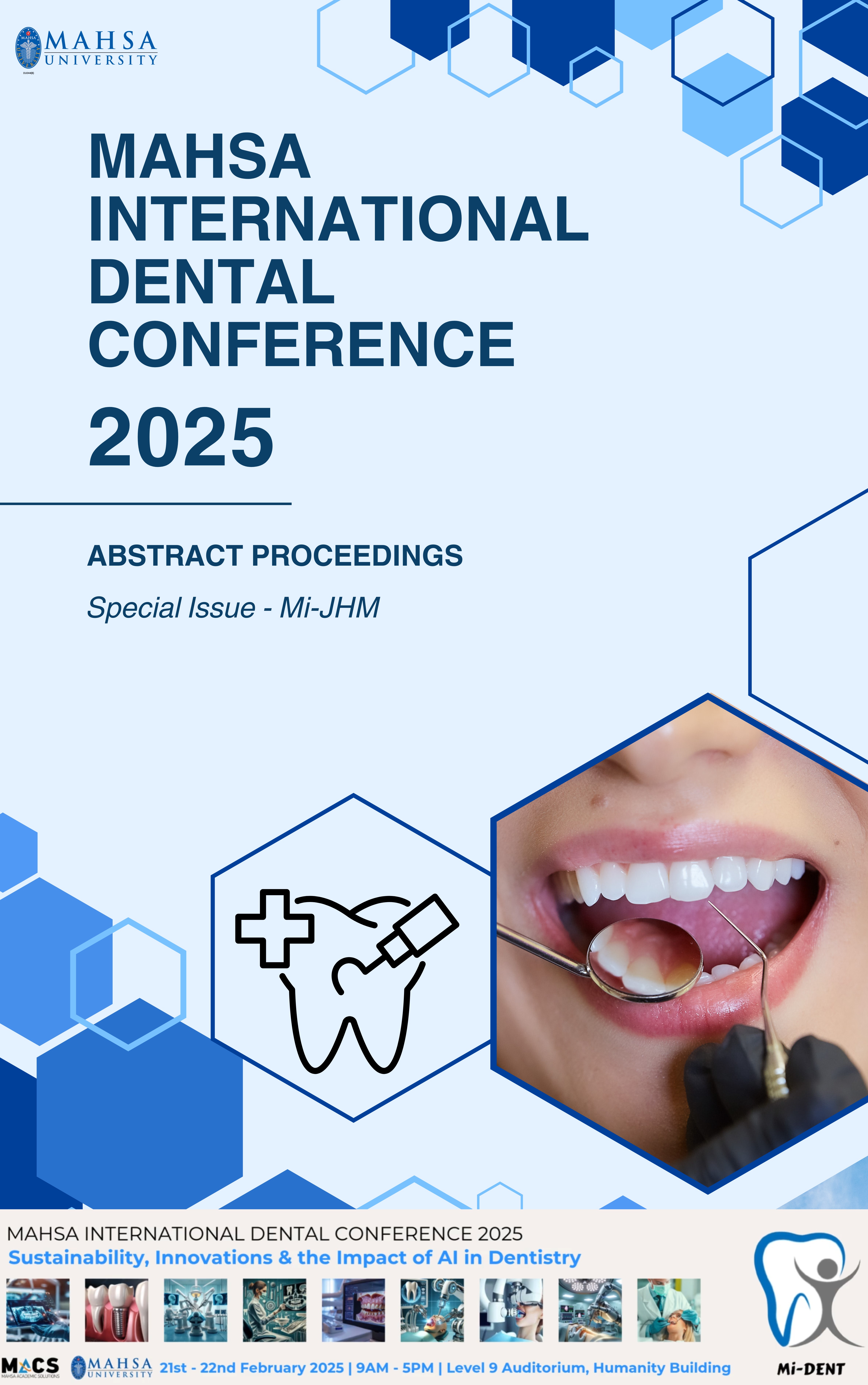 Vol. 5 No. SI (1) (2025)This Special Issue is exclusively launched for publishing the Abstracts of all papers that were presented in MAHSA International Dentistry Conference (Mi-DENT 2025) at MAHSA University.